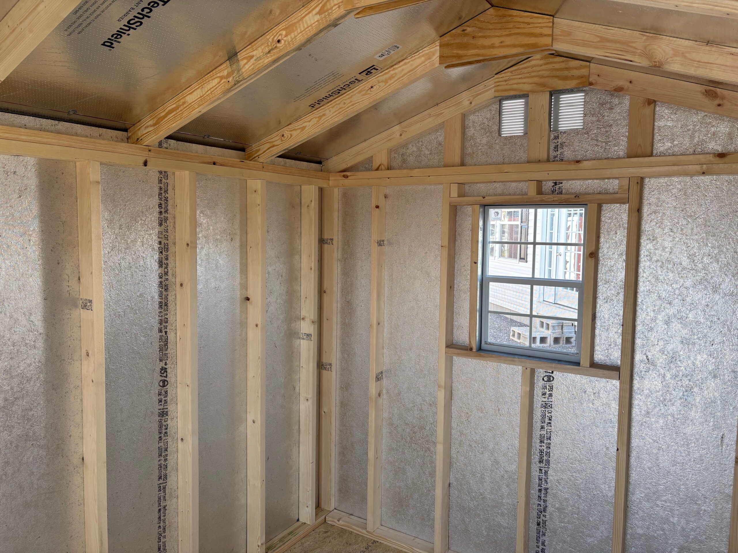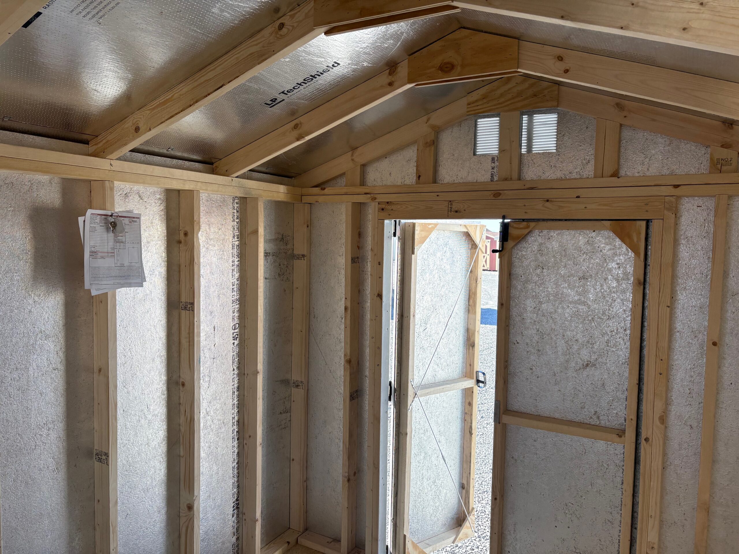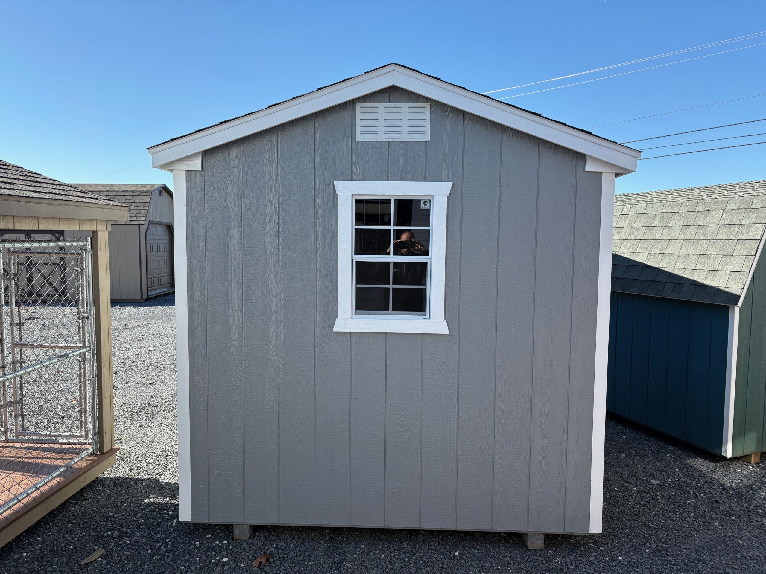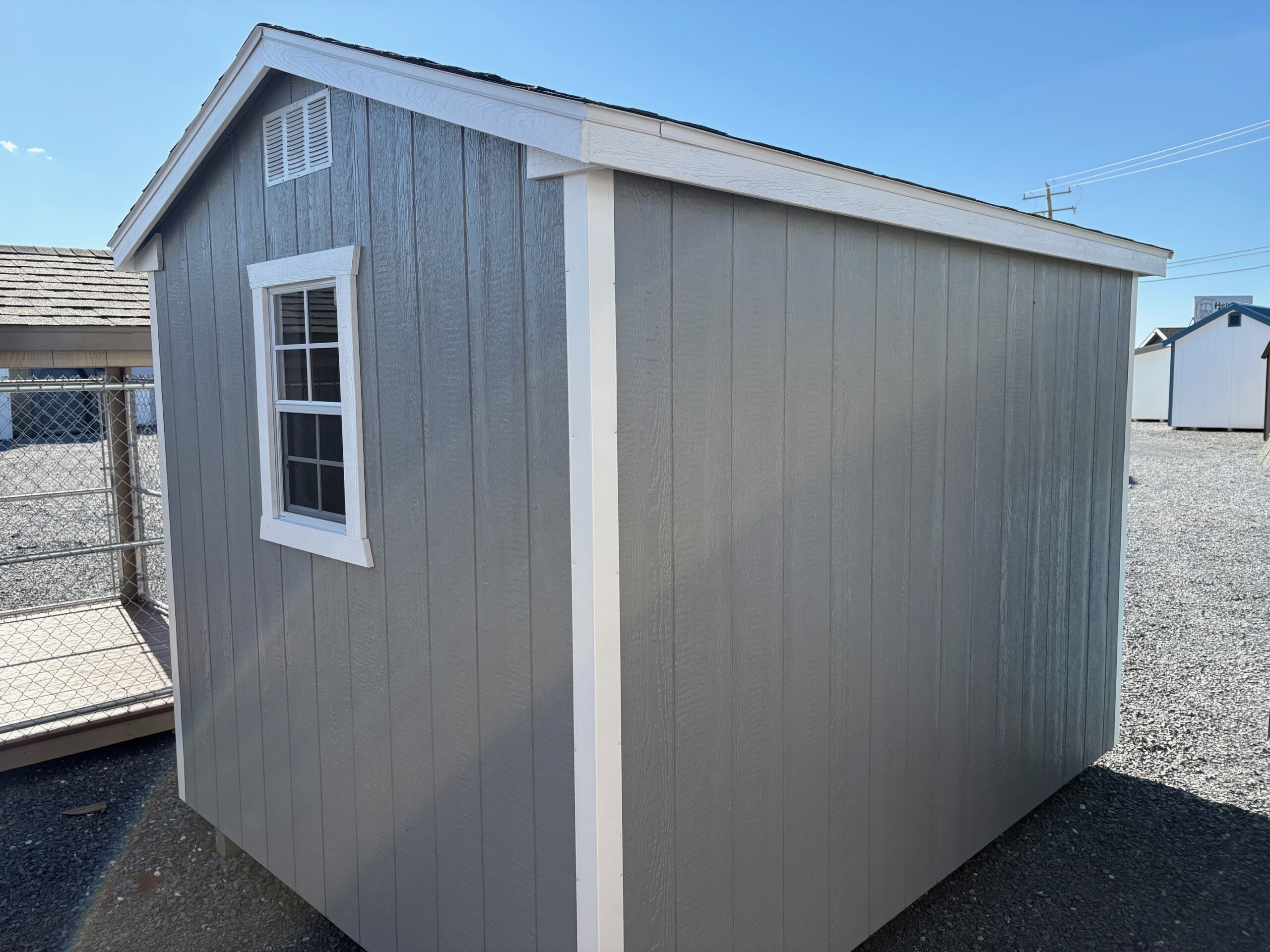 8x10x7 Classic Cottage; Light Gray; White Trim; Charcoal Shingles; 4′ Double Door; 1) 18’x27′ Window
