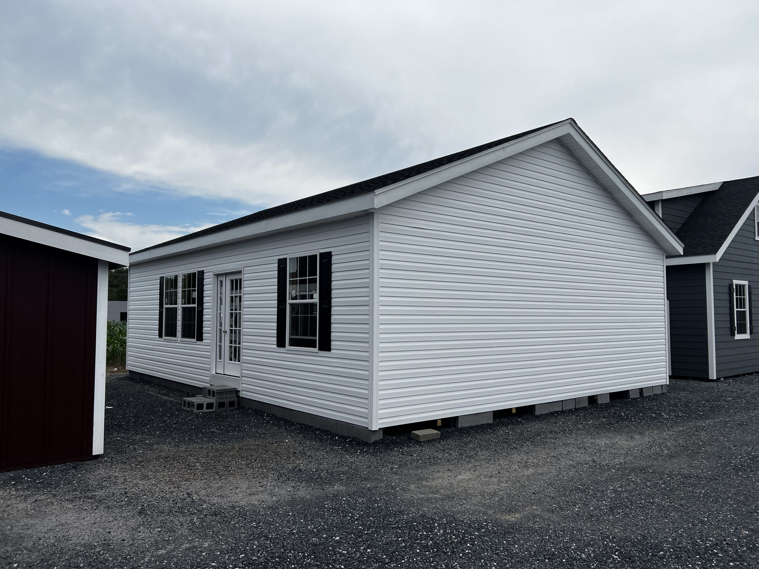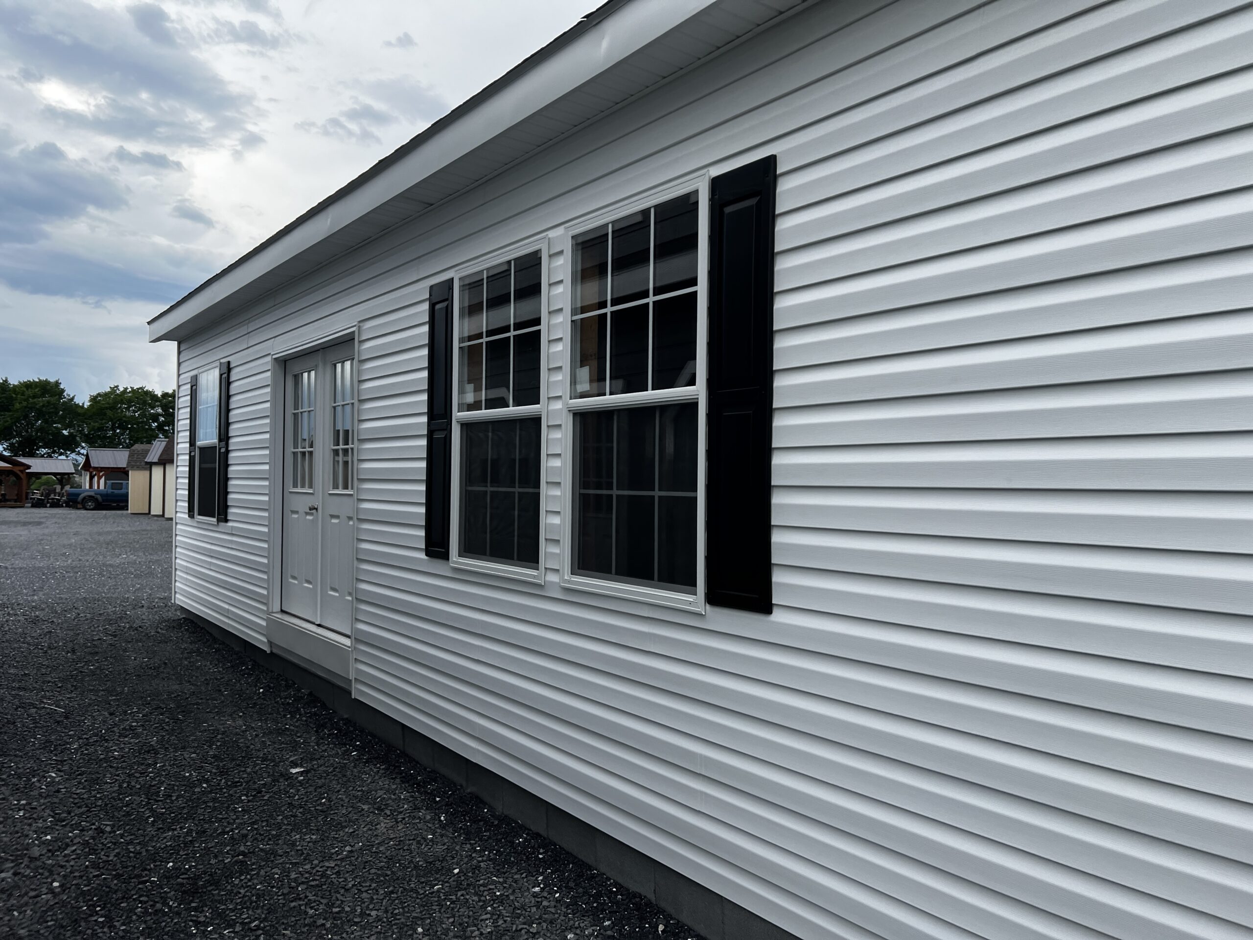 Still want something more personalized? CUSTOMIZE THIS SHED IN 3D1008 Square foot Modular that can be Your Home! This Building will pass code and can be set on Crawlspace, Basement, or Slab Foundations. White Vinyl Siding and Trim, 3D Charcoal Lifetime Architectural Shingles, Vented Soffit and Ridge, Huber Blue Plus Flooring.